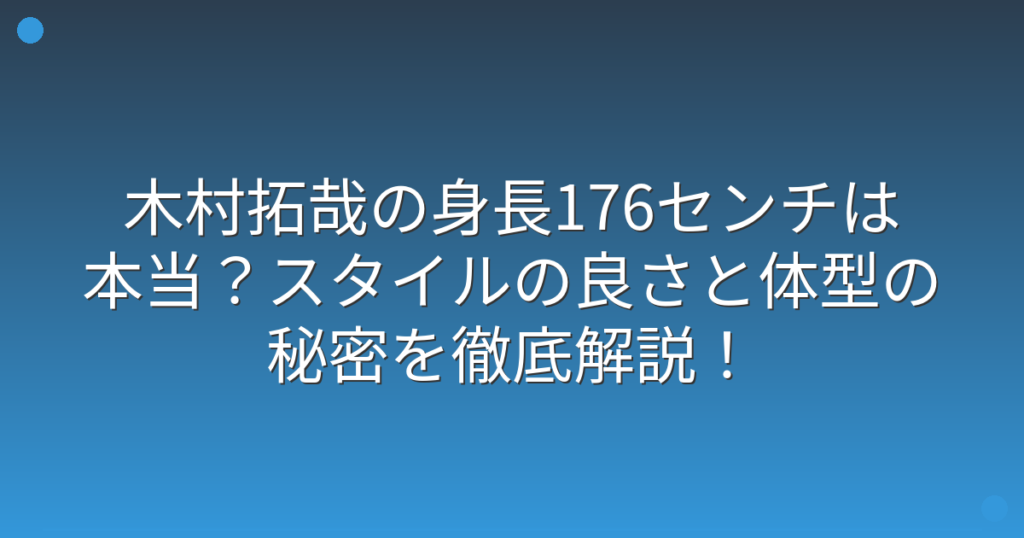 木村拓哉の身長176センチは本当?スタイルの良さと体型の秘密を徹底解説!