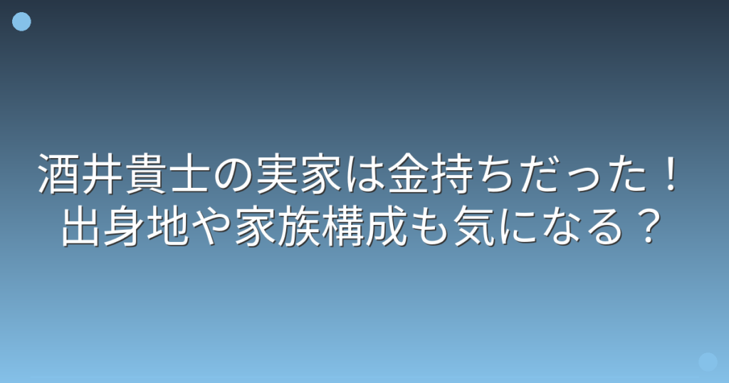 酒井貴士の実家は金持ちだった!出身地や家族構成も気になる?
