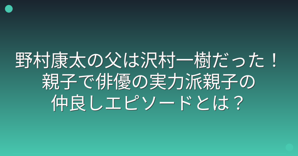 野村康太の父は沢村一樹だった!親子で俳優の実力派親子の仲良しエピソードとは?