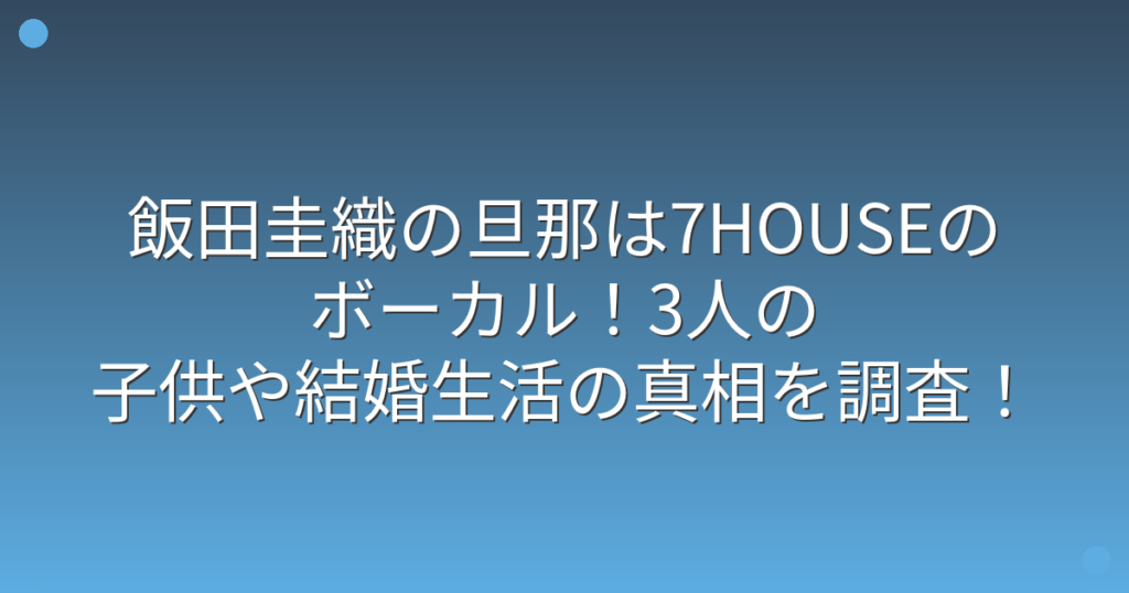 飯田圭織の旦那は7HOUSEのボーカル!3人の子供や結婚生活の真相を調査!
