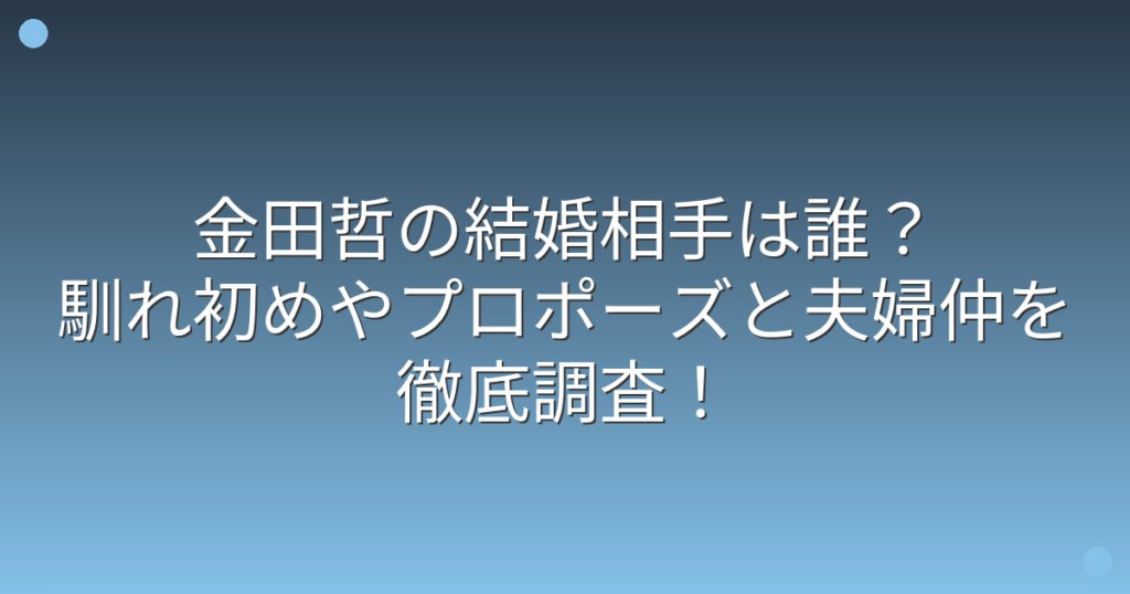 金田哲の結婚相手は誰?馴れ初めやプロポーズと夫婦仲を徹底調査!