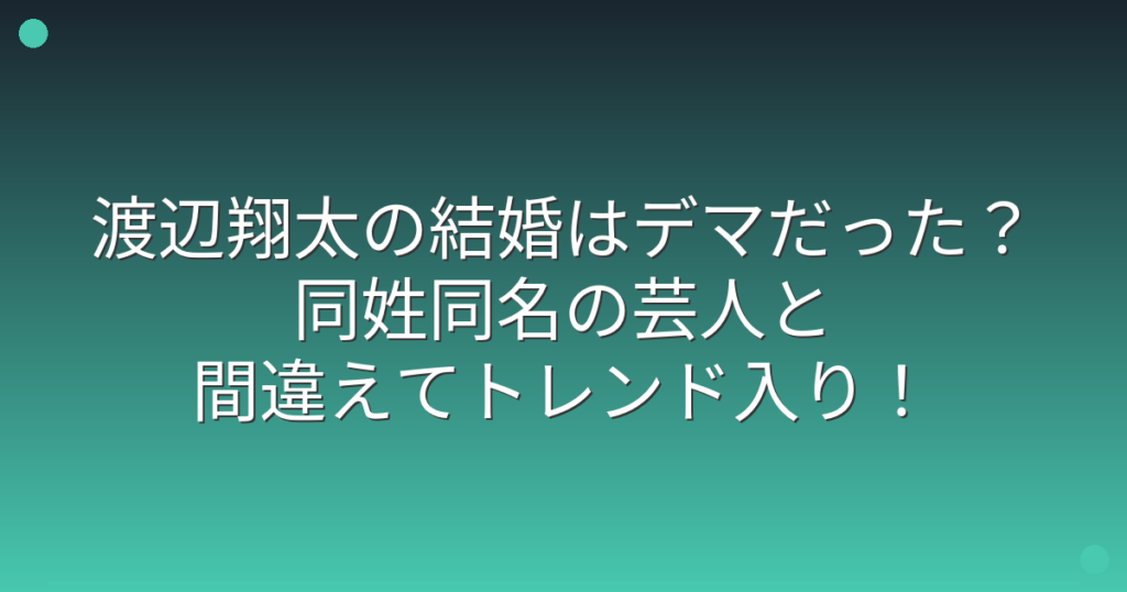 渡辺翔太の結婚はデマだった?同姓同名の芸人と間違えてトレンド入り!