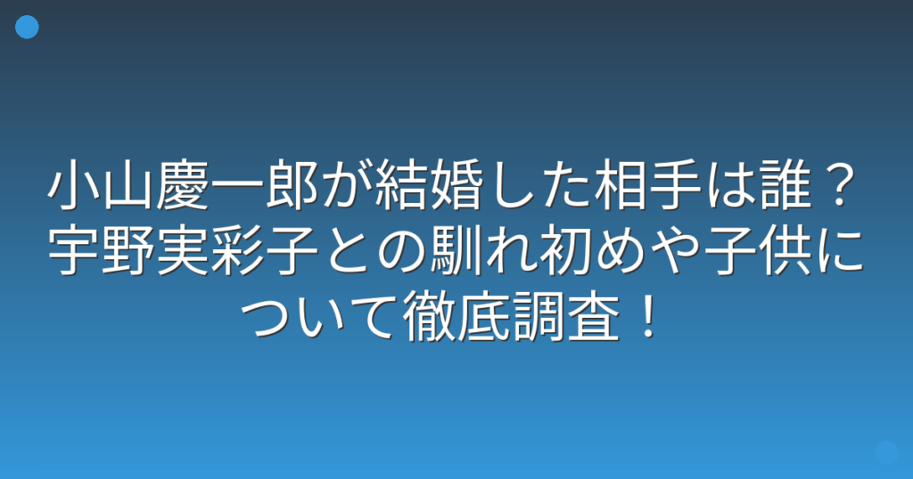 小山慶一郎が結婚した相手は誰?宇野実彩子との馴れ初めや子供について徹底調査!