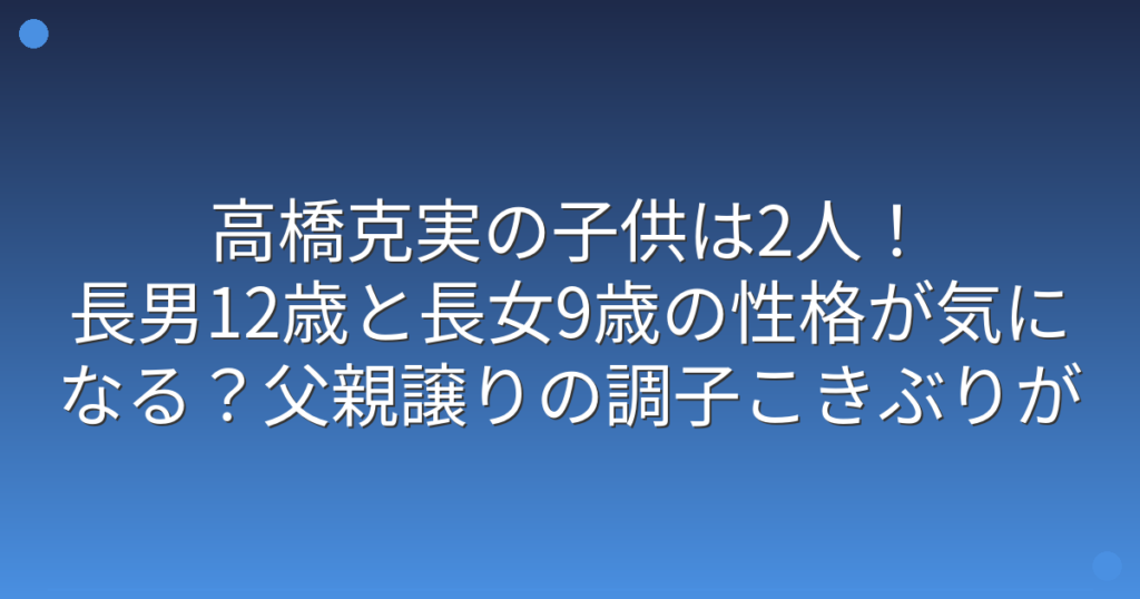 高橋克実の子供は2人!長男12歳と長女9歳の性格が気になる?父親譲りの調子こきぶりが話題に!