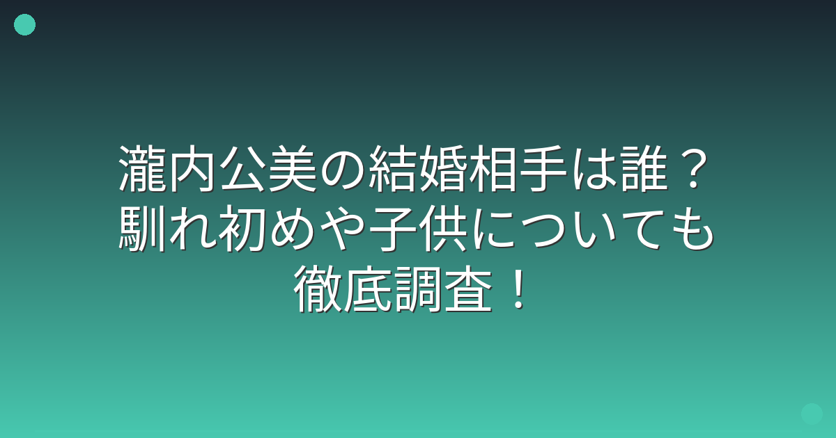調査の結果、瀧内公美さんは現在結婚しておらず、お子さんもいないことが分かりました。