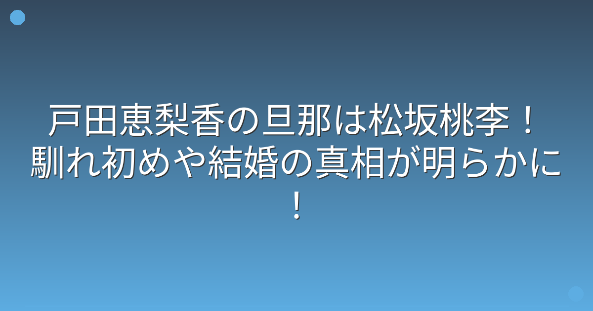 人気女優として長年活躍してきた戸田恵梨香さんですが、旦那さんは誰なのか気になっている方も多いのではないでしょうか。