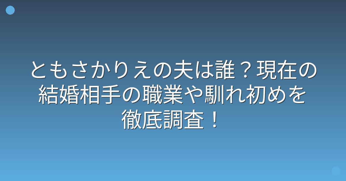 今回は、ともさかりえさんの夫が誰なのか、職業や馴れ初めについてお伝えしてきました。