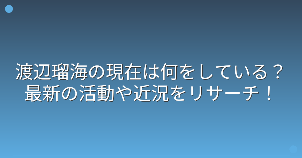そこで今回は、渡辺瑠海さんの現在の活動や最新の近況について詳しく見ていきましょう!